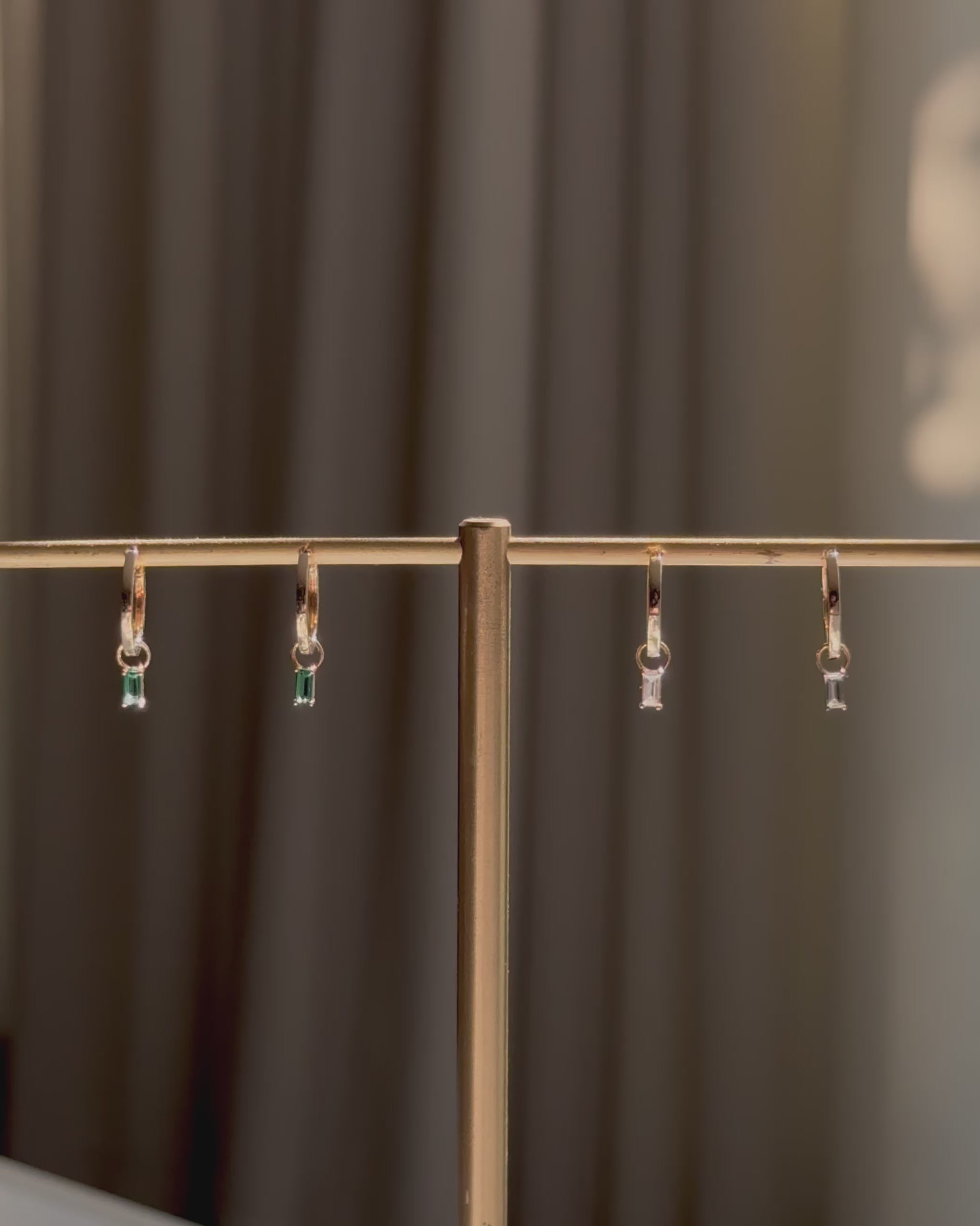 Crafted from 14K recycled gold, our timeless White Topaz Hoop Earring embodies classic elegance. Perfect for any occasion, wear these sleek hoops alone for understated style, or stack them for a trendy layered look.