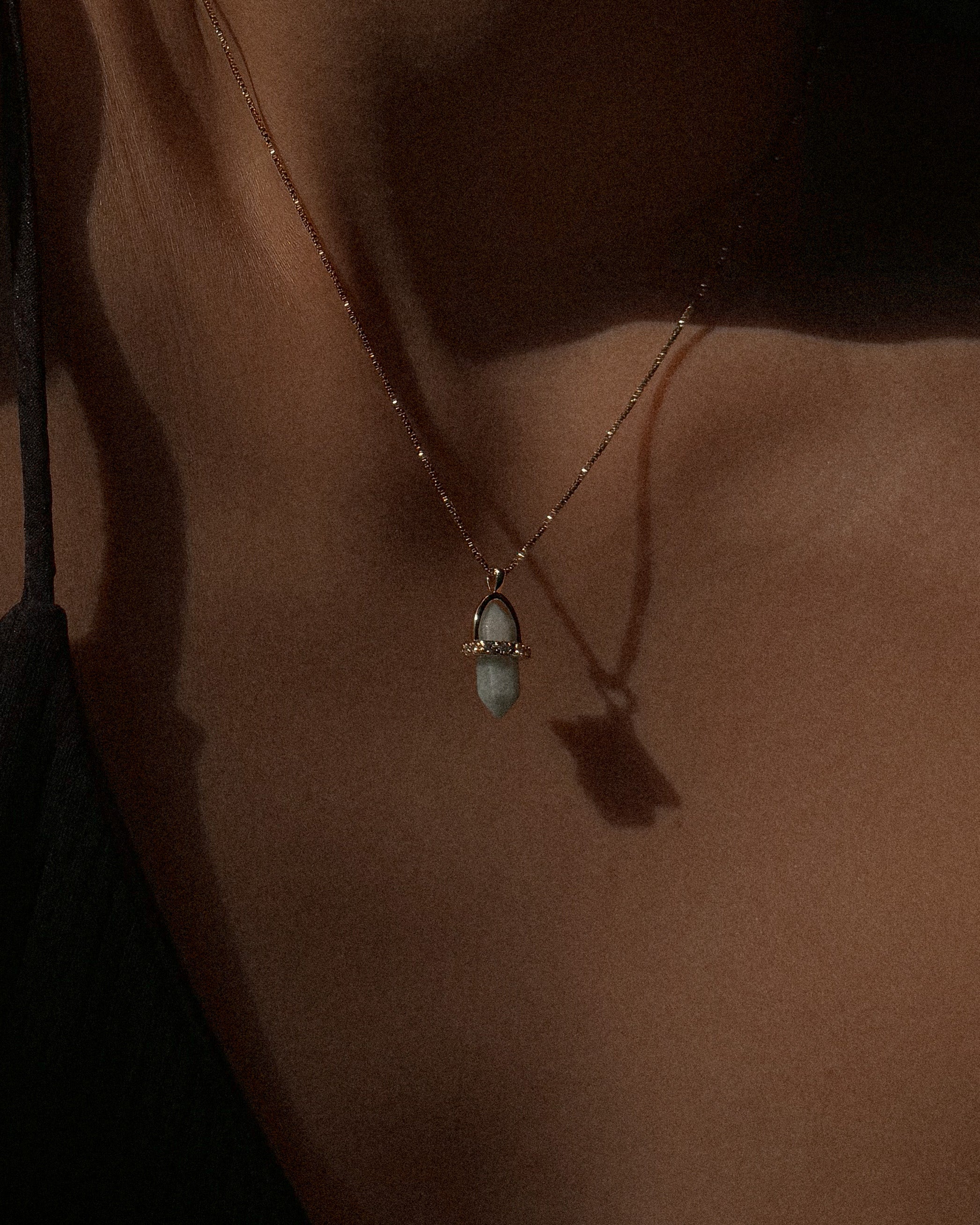 A piece that speaks to the soul—calm, balanced, and effortlessly radiant. The Amazonite Tranquility Necklace features a natural amazonite gemstone, known as the stone of courage and truth. This soothing crystal is believed to calm the mind, ease stress, and inspire clarity, helping you speak your truth with confidence and grace.