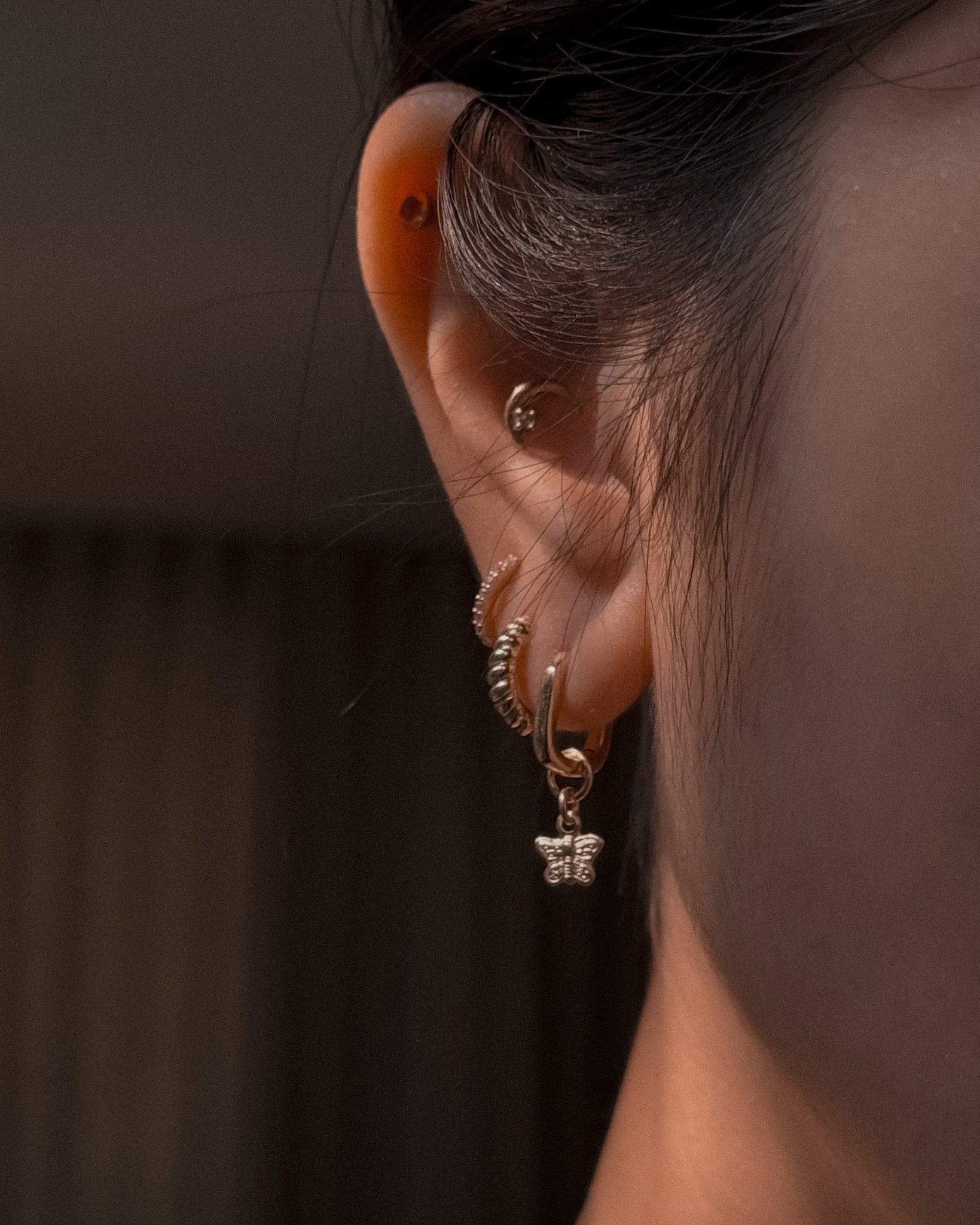 Featuring a dainty butterfly charm crafted in 14k gold fill to add to your favourite hoop and chain. Symbolizing transformation and new beginnings, the butterfly is a reminder of life's beautiful changes.