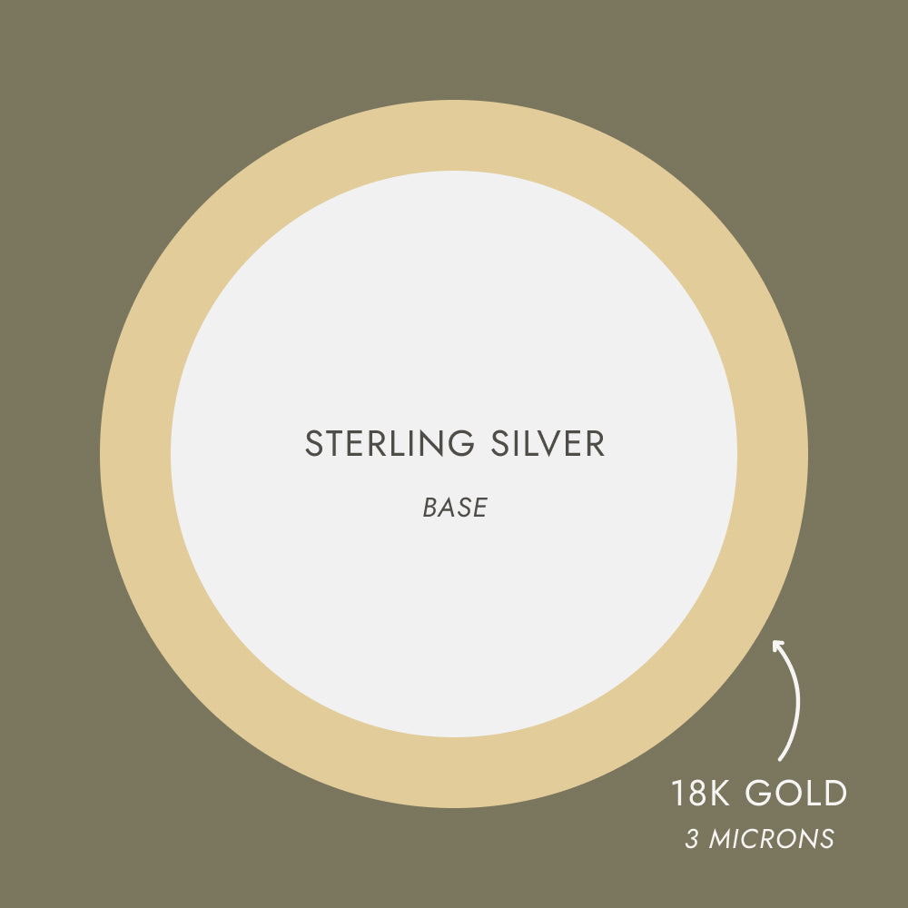 At Midori Jewelry, we take this standard even further. Each of our pieces is crafted in 18K gold vermeil with a 3-micron gold layer, exceeding industry standards for durability and depth of color. Every piece is then sealed with an invisible anti-tarnish coating for extra protection against moisture and daily wear.